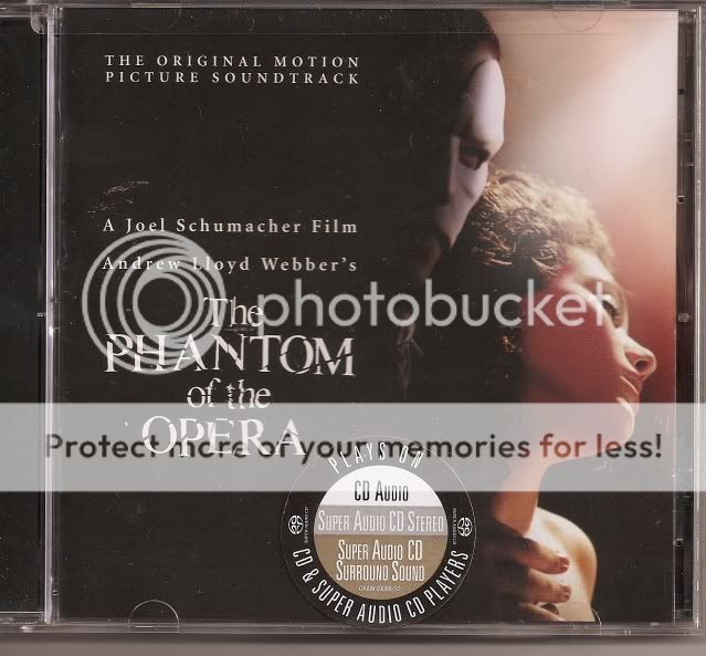 แผ่นสุดท้ายไม่ต้องบรรยายสรรพคุณครับเป็น original soundtrack ของ Phantom of the Opera ที่นำมาบันทึกในรูปแบบของ SACD เสียงสะอาดขึ้นมากๆ แต่สัญญาณเสียงเบากว่าแผ่นปกติ