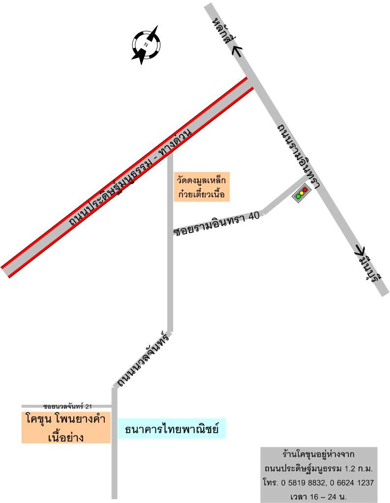 คุณ  กอฟ    ตกลงร้านนี้อยู่ที่ไหนกันแน่  เห็นออกทีวี  แต่ก็ไม่รู้ว่าอยู่ไหน   อยากไปลองกินซักหน่อย   เห็นบรรยายว่า ท่านทักษิณ ชอบสั่งอะไร และนั่งโต๊ะไหน    อยากไปนั่งที่เดียวกับท่าน  เผื่อจะได้มีบารมีและรวยเหมือนท่านบ้างอ่ะ  อิ อิ