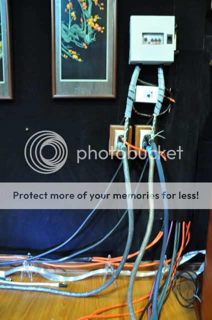 รูปสายสัญญาณและสายไฟต่างๆ ที่เดินลอยจากพื้นและไม่ปนกันระหว่างสายไฟกับสายสัญญาณทั้งหมด กว่าจะจัดเข้าที่ได้ใช้เวลาไปเกือบ 3 ชั่วโมง