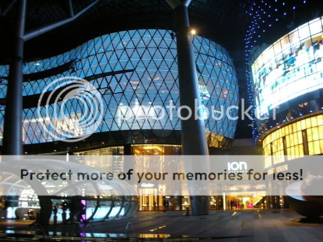 ตึก ION Orchard Shopping Center ใหม่เพิ่งเปิดให้บริการ ประดับไฟสีสรรสวยงาม มีน้ำพุแบบยิงเป็นเส้นๆ พร้อมเล่นแสงสีเสียงอยู่บนทางเท้าริมถนนใน Orchard เลย เห็นเป็นปล่องใสๆ หน้าตึกเป็นทางลงรถไฟใตดินที่ทางตึกลงทุนสร้างให้ SMRT ใหม่เองสำหรับปรับภูมิทัศน์หน้าตึกให้ทันสมัยขึ้น