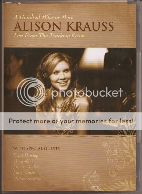 แผ่น DVD Alison Krauss ภาพคมชัดสุดๆ ทั้งๆ ที่เป็นแค่ DVD คาดว่าเร็วๆ นี้คงออกเป็นแผ่น Bluray เสียงในแผ่นเป็นแค่ digital Stereo เท่านั้น ใครเป็นแฟน Alison Krauss จะต้องไปหามาดูให้ได้ Alison ร้องคู่กับ James Taylor 1  เพลง ร้องคู่กับ Brad PAisley 1 เพลง และร้องคู่กับ Tony Rice อีก 2 เพลง (แผ่นนี้เป็นแผ่น DVD zone 1)