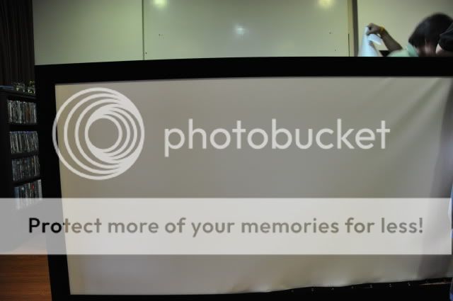 วเมื่อวานนี้ตอนบ่ายทาง Magnet จัดส่งช่าง 2 ท่านมาติดตั้งจอ Stewart Studiotech 2.35 : 1 -ขนาด 102 นิ้ว ให้ที่ห้อง HT ของผมเรียบร้อยแล้ว ต้องขอบคุณช่างทั้งสองท่าน ได้แก่ ช่างหรั่ง และช่างกรณ์ ทั้ง 2 ท่านทำงานได้เร็วมากๆ ครับ แต่น่าเสียดายเล็กน้อยที่ฉากบานเลื่อนของผมใหญ่เกือบบดบังหน้า screen สะท้อนภาพ เหลือเศษอีกเพียงเล็กน้อย คงต้องให้ช่างเฟอร์นิเจอร์มาแก้ไขให้เห็นขอบกำมะหยี่สีดำด้านข้างในวันข้างหน้าถึงจะดูโอเค