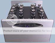 The overall gain is 20 dB (10:1), THD level is 0.1% or less, separation at 1 kHz is better than 95 dB, and the response is claimed to extend from 2 to 220,000 Hz at -3 dB points. There is no overall negative feedback, and there are absolutely no interstage buffers - no capacitors, no transformers, no nothing. It uses 12 PCC88 tubes. Its output impedance is a low 100 Ohms value, low enough to drive just about anything to nirvana.