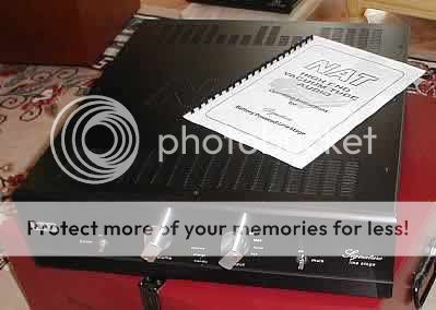 ต้องไปลองฟังกันที่ร้าน เอ วี พาราไดซ์ ไฮไฟเซ็นเตอร์ เพราะกำลังจะดูว่าจะโมอะไรเพื่อเพิ่มศักยภาพได้อีกบ้าง วันนี้เลยให้ขุนจิตต์กับว่าที่คุณพ่อหมาย ยกเอาปรีหลอดคู่ขวัญเขามาลองพร้อมๆ กันด้วย ปรีที่ว่ายี่ห้อ "NAT" รุ่น Signature เป็นปรีหลอด ผสมทรานซิสเตอร์ (ไฮบริด) ปรีรุ่นนี้เขาใช้แบตเตอร์รี่แห้ง น้ำหนักลูกละ 35 กิโล 2 ลูก เป็นตัวเพาว์เวอร์ซัพพลายให้กับหลอดทั้งสองข้าง ซ้าย - ขวา น้ำหนักรวมปรี ประมาณ 90 กิโล เลยเชียว มาดูรูปกันครับ
