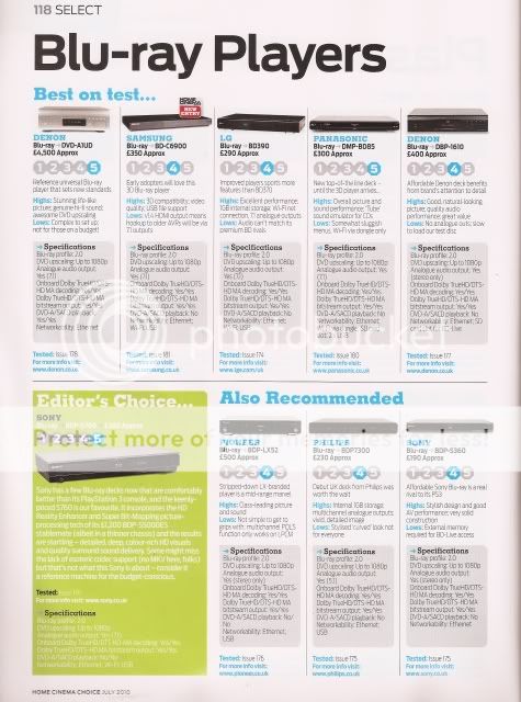 มาดูรีวิวอุปกรณ์สำคัญๆ ทาง HomeTheater ของนิตยสาร Home Cinema Choice ฝั่ง UK ฉบับกลางปี 2010 July 2010 กันบ้างครับ ว่ามีตัวไหนติด recommendation กับเขาบ้าง