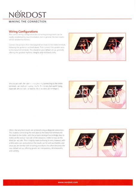 เอารูปวิธีการเชื่อมต่อสาย Norse Bi-wire jumper มาให้ดูกันใหม่ครับ เดี๋ยววันนี้จะลองดูตามเทคนิคที่เขาแนะนำครับ :headphone