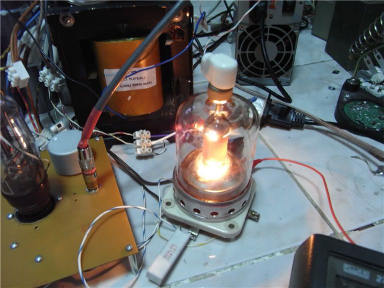 เนื่องจากเจ้านีี่เป็นเทตโทรด มันเลยไมมีขาซัพเพรสเซอร์ให้ต่อเข้ากับคาโถด ทีนี้ผมลืมปลดออก (ใช้ Socket 803) เพลทของ EL38 อ้วนดำ มันแดง