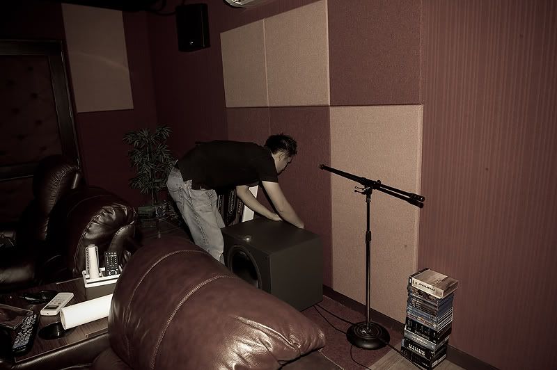 พอเสร็จแล้วเบสดีขึ้นไปอีกระดับหนึ่งครับ ได้บรรยากาศมากขึ้น แต่ไม่ยักกะรู้ว่า sub เปิดอยู่ ตอนแรกต้องถามพี่เล็กว่ามันเปิดอยู่เปล่าพี่ แต่พอไปแนบใกล้ๆถึงได้รู้ว่ามันแค่สร้างแรงกระแทก ให้ได้ความรู้สึกมากขึ้น และผลดีอีกอย่างคือเบสจะไม่คราง เก็บตัวเร็วขึ้น เสียงกระชับ คม ซึ่งเป็นเสียงที่อยากได้พอดี แต่ตอนฟังเพลงพี่เล็กแนะนำให้ปิดไปเลย ตอนนี้เสียงโดยรวมพอใจละไม่หนักไป กลางๆ เบสไม่ได้เป็นพระเอกเกินไป จะมาเมื่อต้องมา ดูหนังได้นานๆไม่อึดอัด ยังไงต้องขอบคุณพี่เล็กอีกครับหนึ่งครับผม
