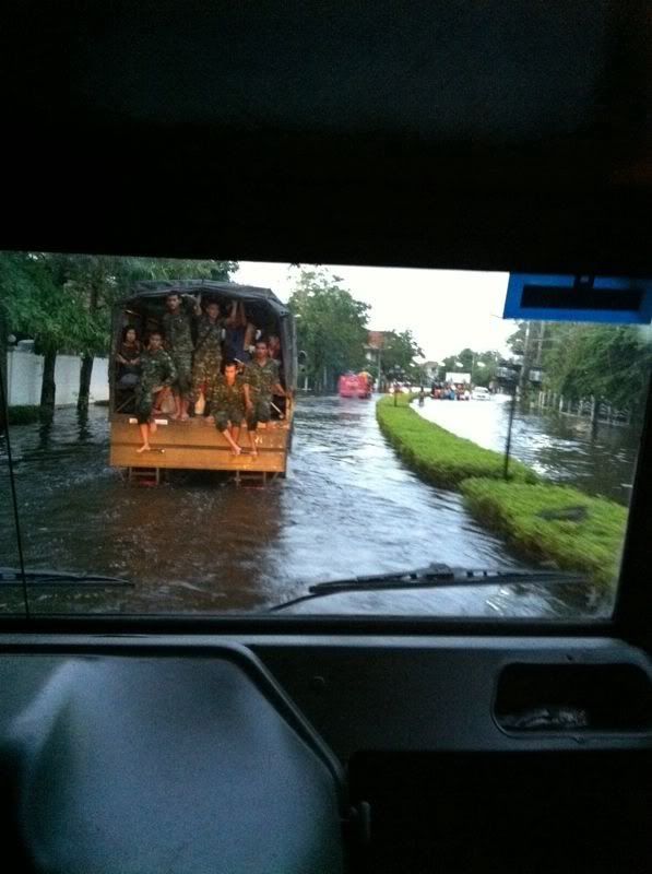 ขอบคุณทุกคนแทนพี่ต๋อมนะคะที่เป็นห่วง ตอนนี้ยังนอนสลบอยู่เลยค่ะ ขอบคุณคุณจิต คุณเพชร ที่เสี่ยงมาช่วย รถกะบะเข้ามาไม่ได้หรอกค่ะต้องยกสูงเท่านั้น ข้างในกะบะจอดตายกันเพียบ โชคดีได้บิ้กฟุตจากอาของพี่ที่รู้จักมาช่วย ขวัญยืนร้องไห้อยู่หน้ามบ.ไม่รู้จะเข้าไปยังไง มันท่วมสูงมาก แล้วก็ขอบคุณพี่นัท พี่หมูพี่สาวแฟนพี่นัทที่เดินลุยนำ้เป็นชั่วโมงมาช่วยยก ช่วยกั้นกระสอบใหม่ ขอบคุณทุกคนจากใจจริงๆค่ะ ตอนนี้สิ่งที่ทำได้คือสวดภาวนาให้ไอ้ที่กั้นๆเอาไว้จะกันนำ้ได้ สาธุ