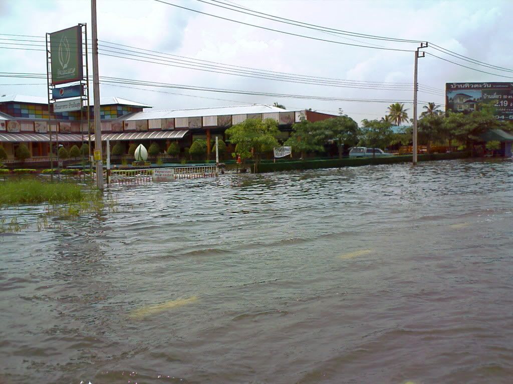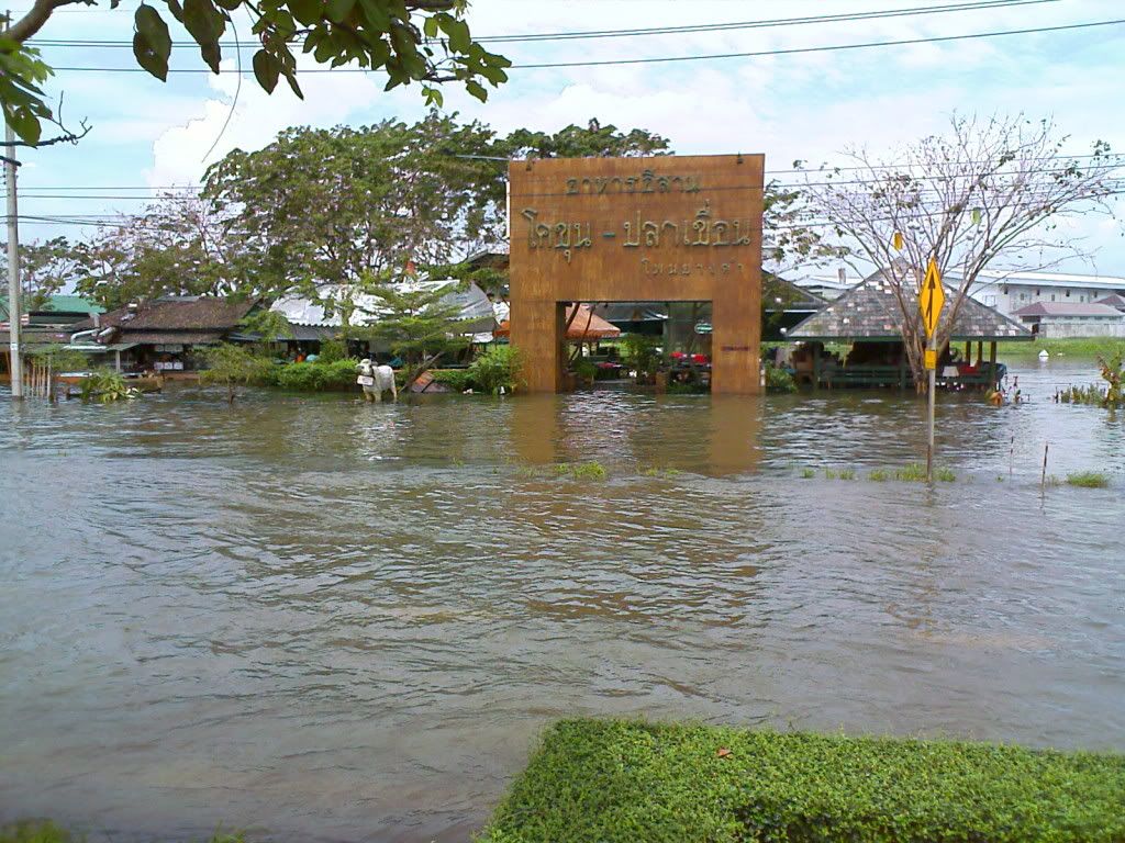 ร้านอิ่มปลาเผา น้ำท่วมสูง