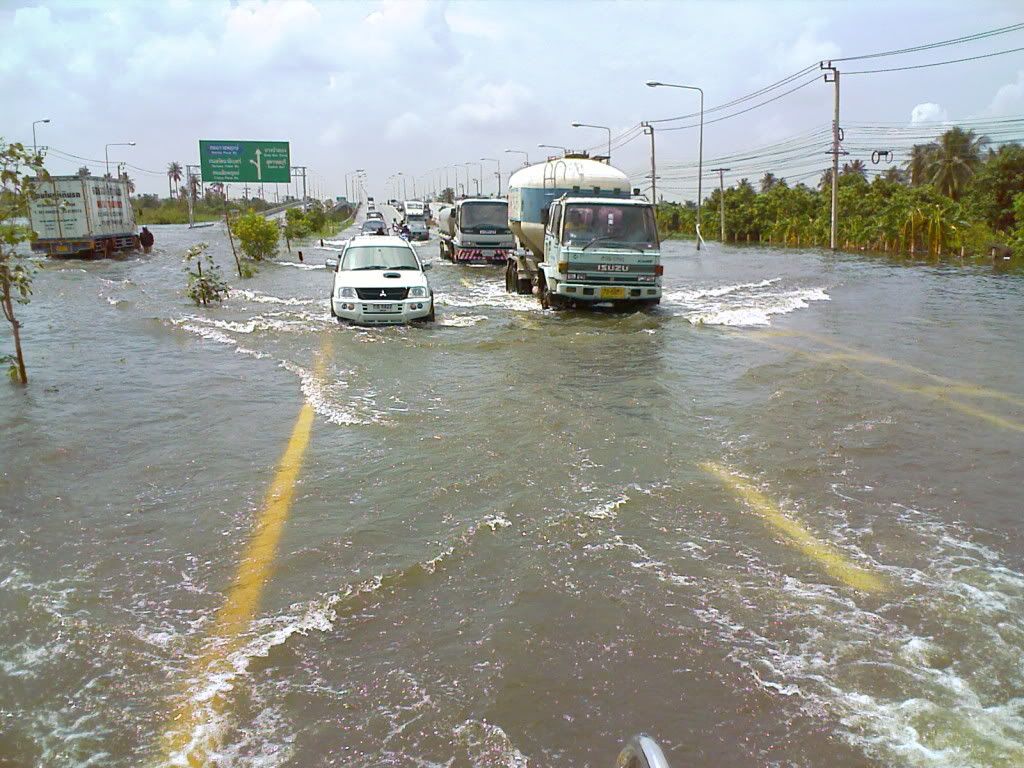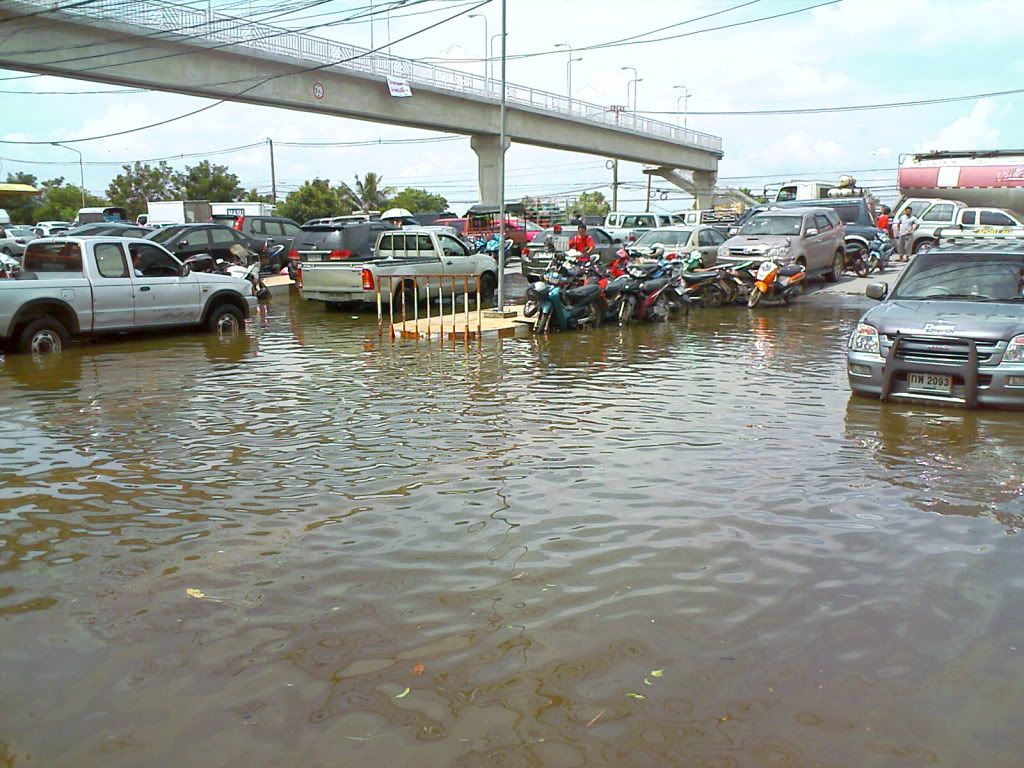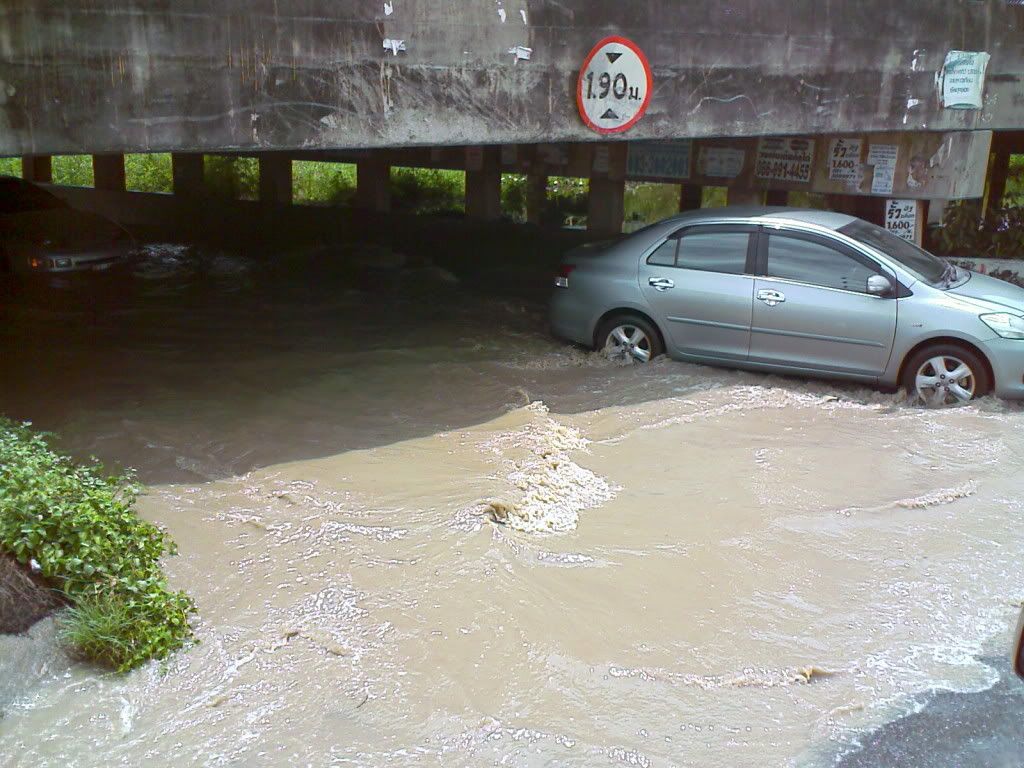ถนนขาลงจากสะพานพระราม 4 น้ำท่วมแล้ว