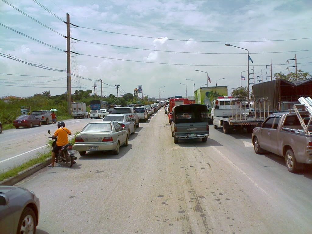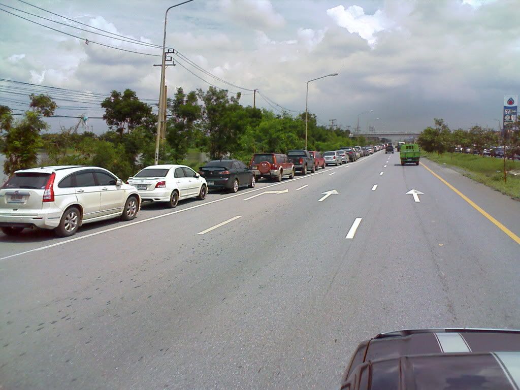 มีรถจอดเต็มไหล่ทาง สองข้างทาง