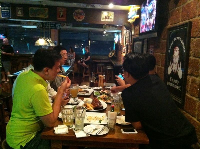 เมื่อวานฝนตกและรถติดมากครับ กว่าจะไปถึงที่ Road House ก็ทุ่มครึ่ง พอดีกับเวลาที่จองไว้เลย จากที่คาดว่าจะไปถึงกันก่อนเวลาพอสมควร
