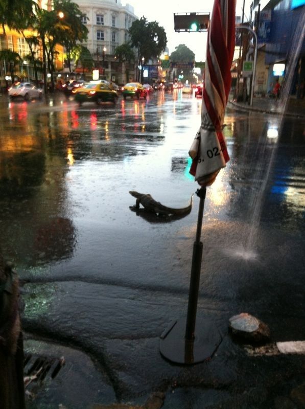 ปรากฏว่ามีตัวเงินตัวทอง ตัวเบ้อเร่ิม ไม่รู้โผล่มาจากไหน มาเดินอยู่กลางสี่แยกวังบูรพาเลย