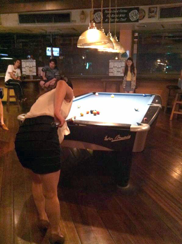 ระหว่างผมเล่นพูล  ชนะชาวบ้านโต็ะอื่นไปหลายเกม