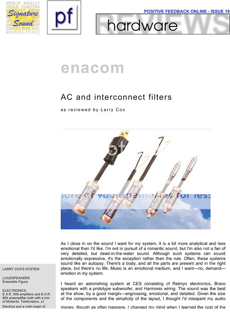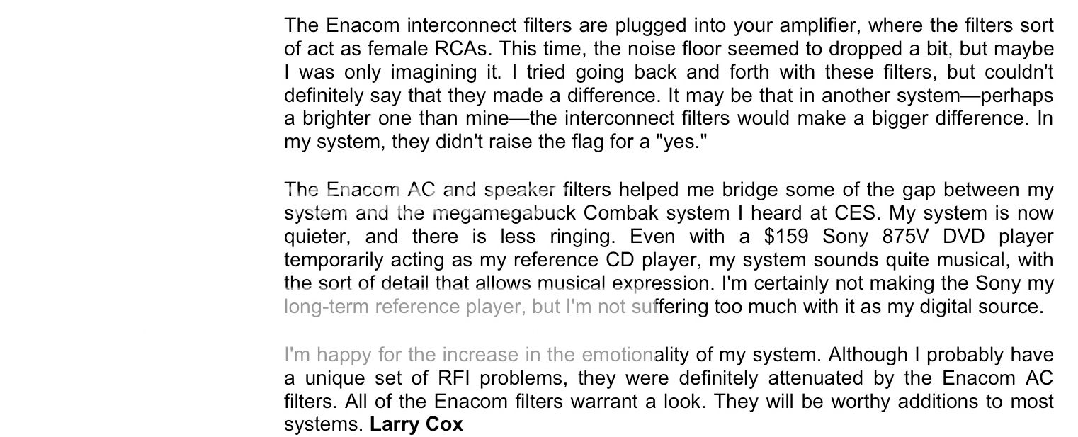 HARMONIX TUNING ผู้นำในอุปกรณ์เพื่อการขจัดสัญญาณรบกวน ( NOISE ELIMINATORS) สำหรับชุดเครื่องเสียง มานานกว่า30ปี ENACOM SERIES ประกอบด้วย 1. AC ENACOM 2. SPEAKER ENACOM 3. LINE CABLE ENACOM เคล็ดลับของเสียงเพลงที่ หวานใส กระจ่างทุกอณูเสียง และภาพคมชัด สีสันสมจริงเป็นสามมิติ สินค้าทุกตัวออกแบบ และ ผลิตจากประเทศญี่ปุ่น (MADE IN JAPAN )