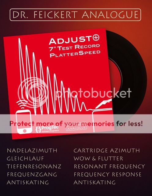 Dr. Feickert Analogue has made their software 'Platter Speed', which is originally part of their Azimuth Adjustment software 'Adjust+', available as a free App for Android and iOS phones and Tablet Computers. You can download this App at the Android Market and the Apple Store. Just search for 'Platter Speed'. This software is presently the best methode to adjust your turntable's platter speed and measure Wow and Flutter. It is more accurate than using the Stroposcope Light Methode. All what is needed is the software on your phone or pad and a test record with a 3150 Hz test signal. Dr. Feickert has made available such a record .