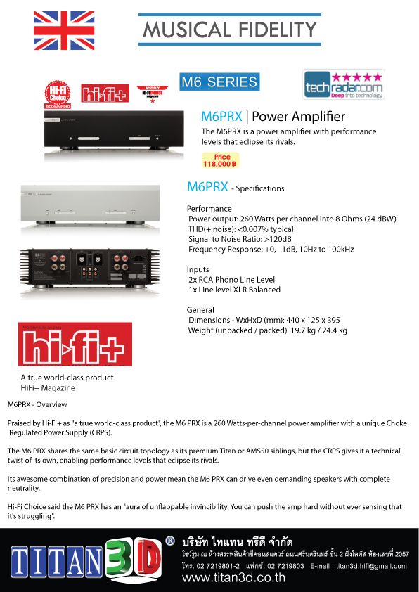 Power output: 500 Watts per channel into 8 Ohms (27dBW)