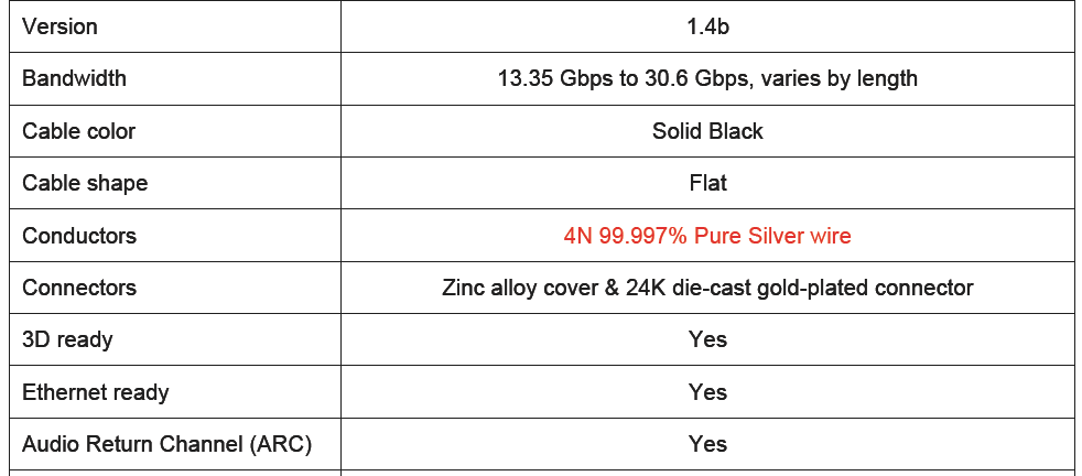 spec ของสาย Golden Sound Master II 13.35 - 30.6 Gbps varies by Length