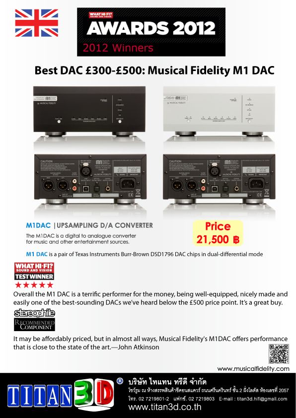 Musical Fidelity M1DAC อีก 1 รางวัล จาก What Hi-Fi Award Winner 2012
