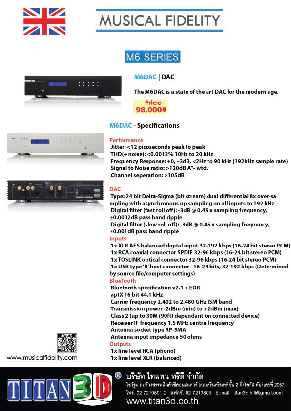 Designing and building DACs of astounding quality is nothing new for Musical Fidelity. In fact our first DAC, the Digilog, was launched right after the first digital source (the CD player) became available in the late 1980s. All of the DACs weve built since then have been both highly praised by reviewers and cherished by their owners.