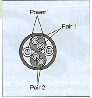 4. สายสีขาว เพื่อใช้เป้นสายข้อมูลขั้วลบ(D-) สายส่งข้อมูลสัญญาณลบ (Negative) ที่มีการเข้ารหัสแบบ NRZ-L พร้อมกับกาหนดระยะวัดของสัญญาณลบเพื่อลดการแทรกแซงของสัญญาณรบกวนและ ข้อผิดพลาด
